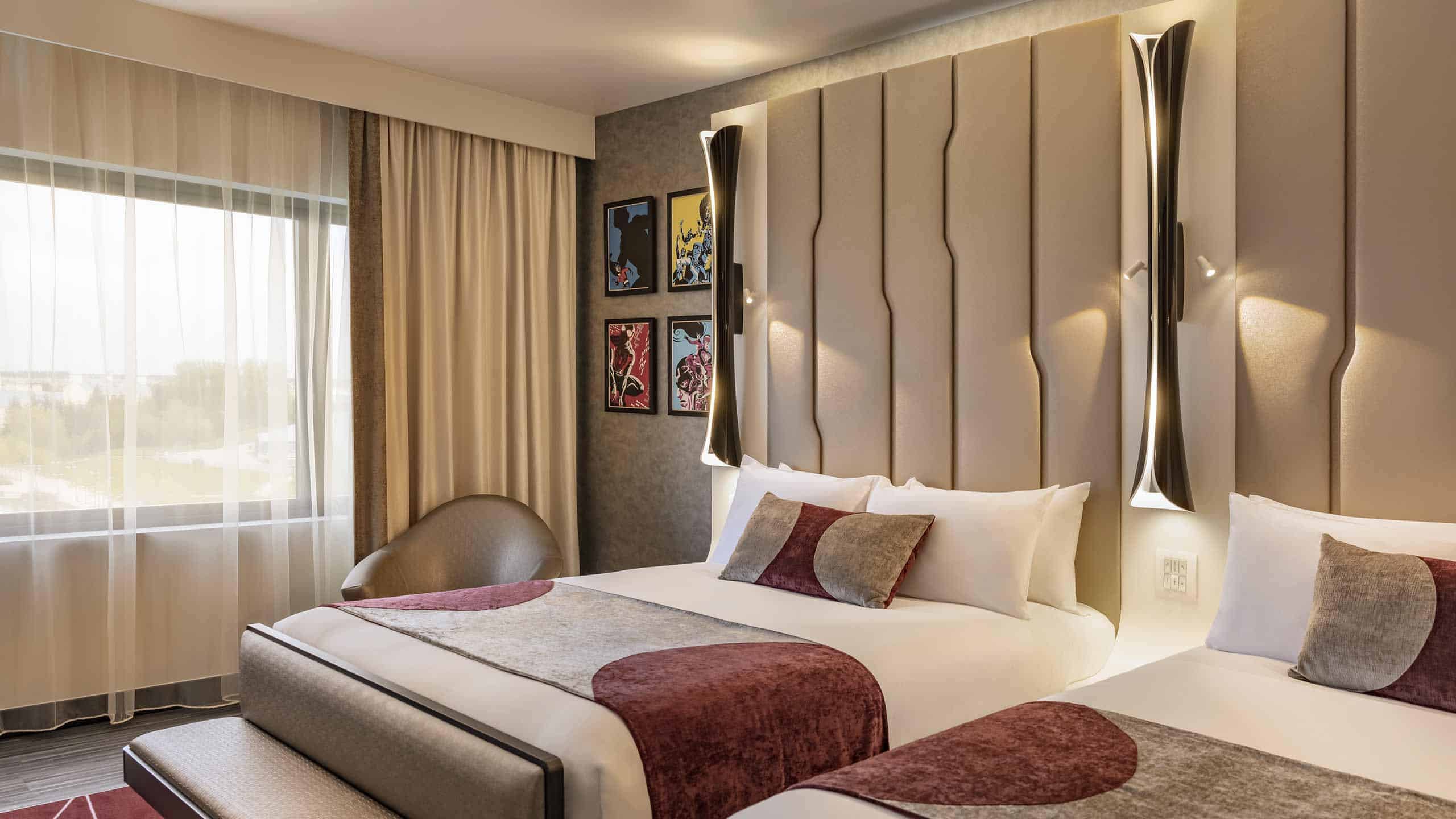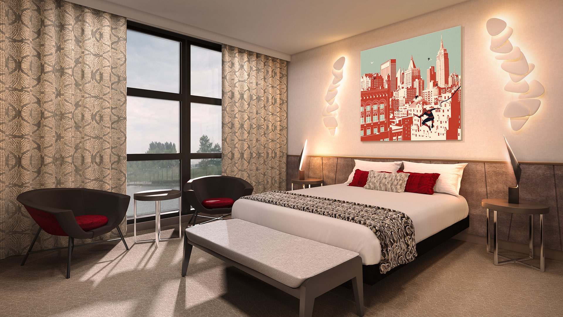 De kamers zijn ingericht in een eigentijdse Manhattan-stijl en versierd met MARVEL-kunst. Voor een premium ervaring is er de Empire State Club, die toegang geeft tot een privé-lounge en extra services.