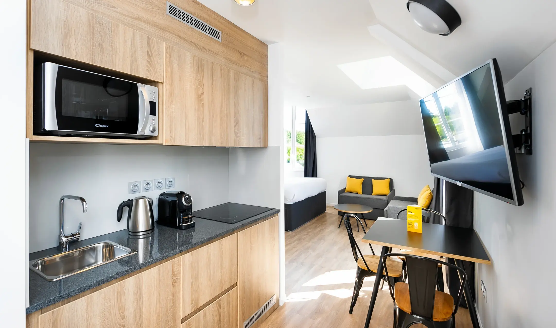 Ervaar de ultieme vrijheid van een eigen appartement, gecombineerd met de luxe services van een hotel, bij Staycity Aparthotels Paris, Marne-la-Vallée. Dit partnerhotel van Disneyland® Paris biedt moderne, ruime appartementen met een volledig ingerichte keuken, ideaal om je eigen plan te trekken. Ontspan na een magische dag in de Disney Parken bij het verwarmde buitenzwembad, prachtig gelegen aan de rand van de natuur nabij Golf Paris Val d’Europe.