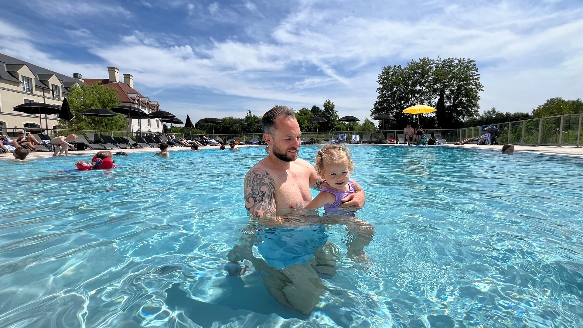 Ja, er is een verwarmd openluchtzwembad dat seizoensgebonden geopend is, met een apart kinderbad.